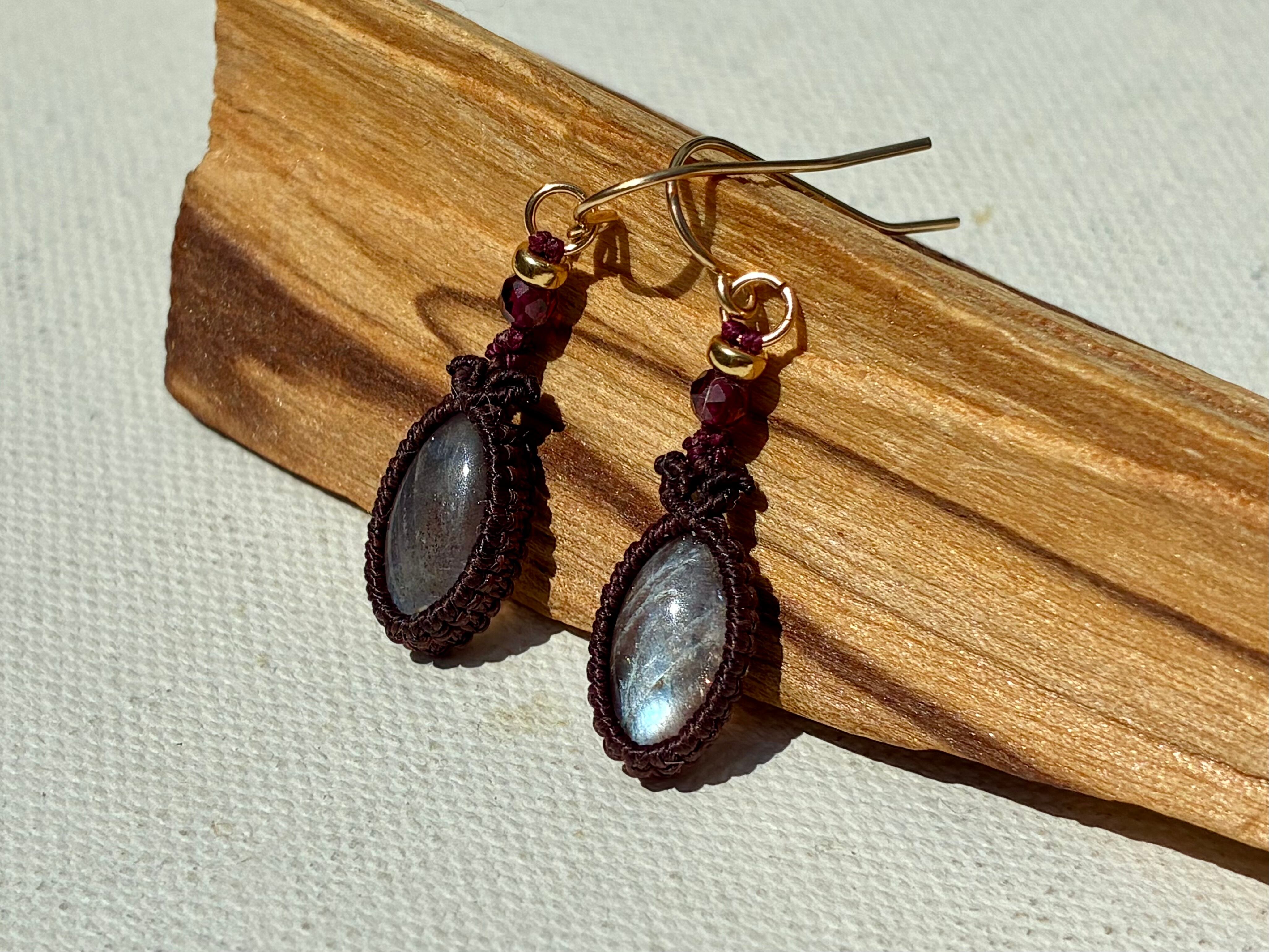 そんなラブラドライトとサンストーンが混在したレアな石をピアスにしてみました。
