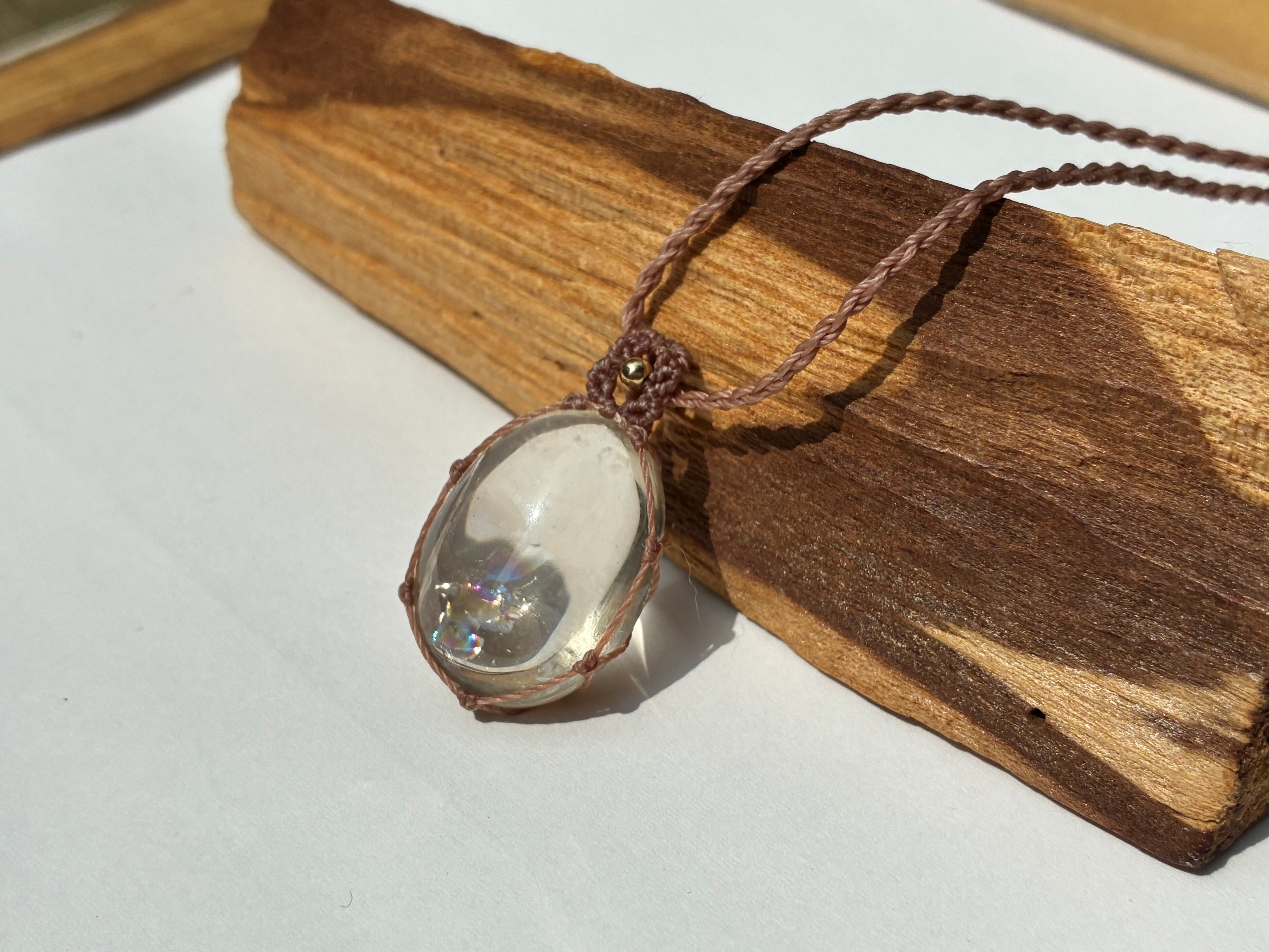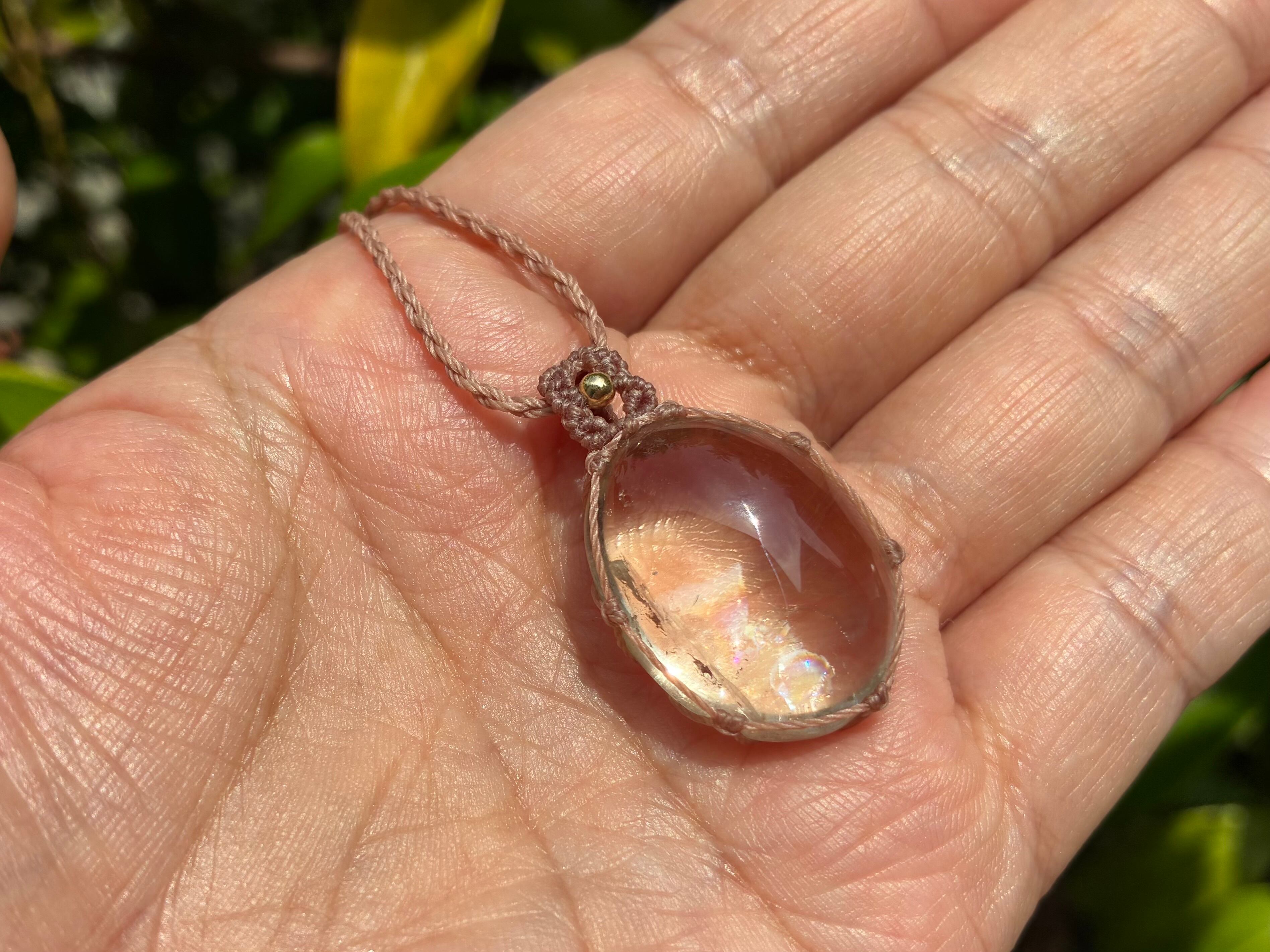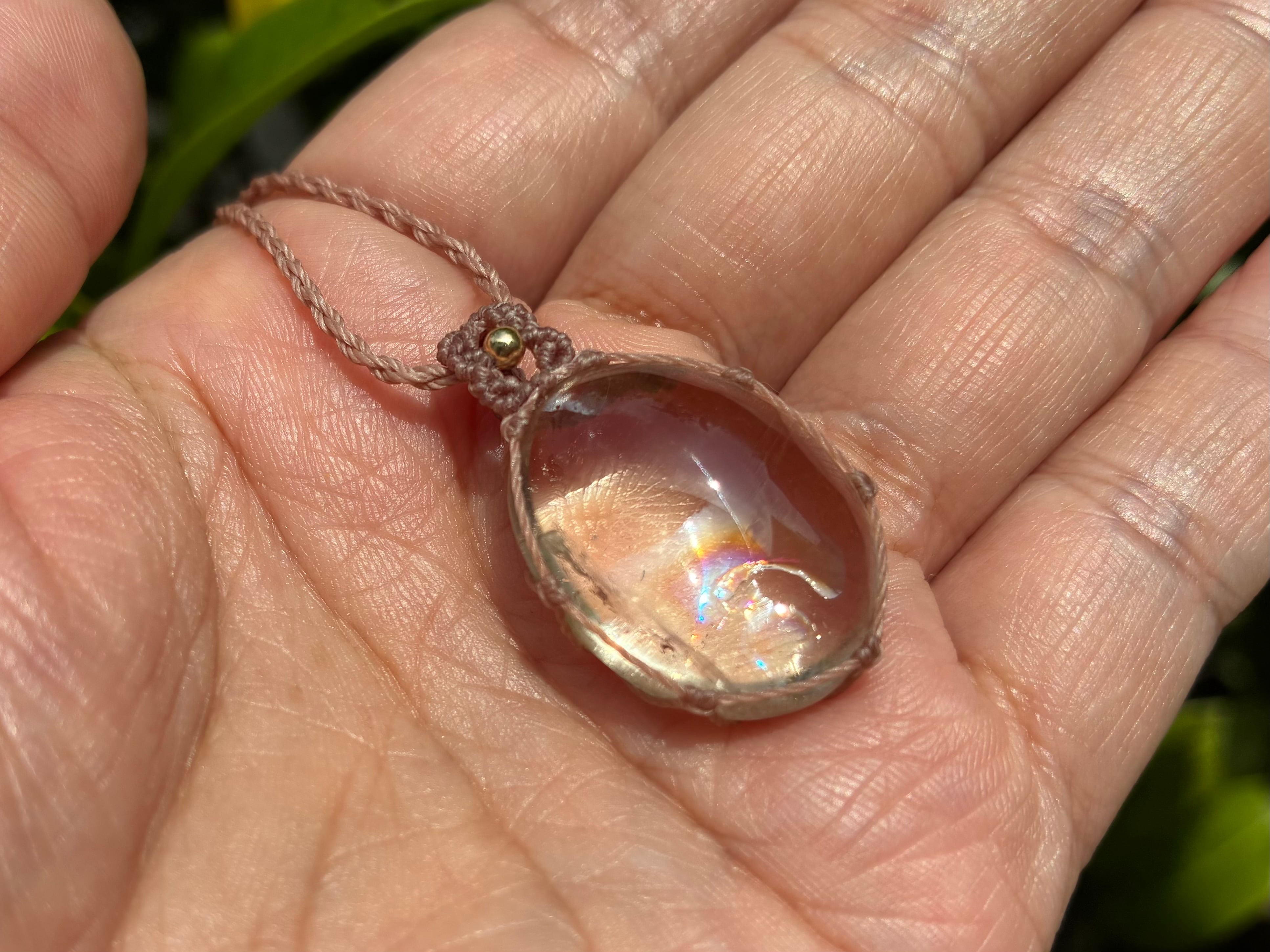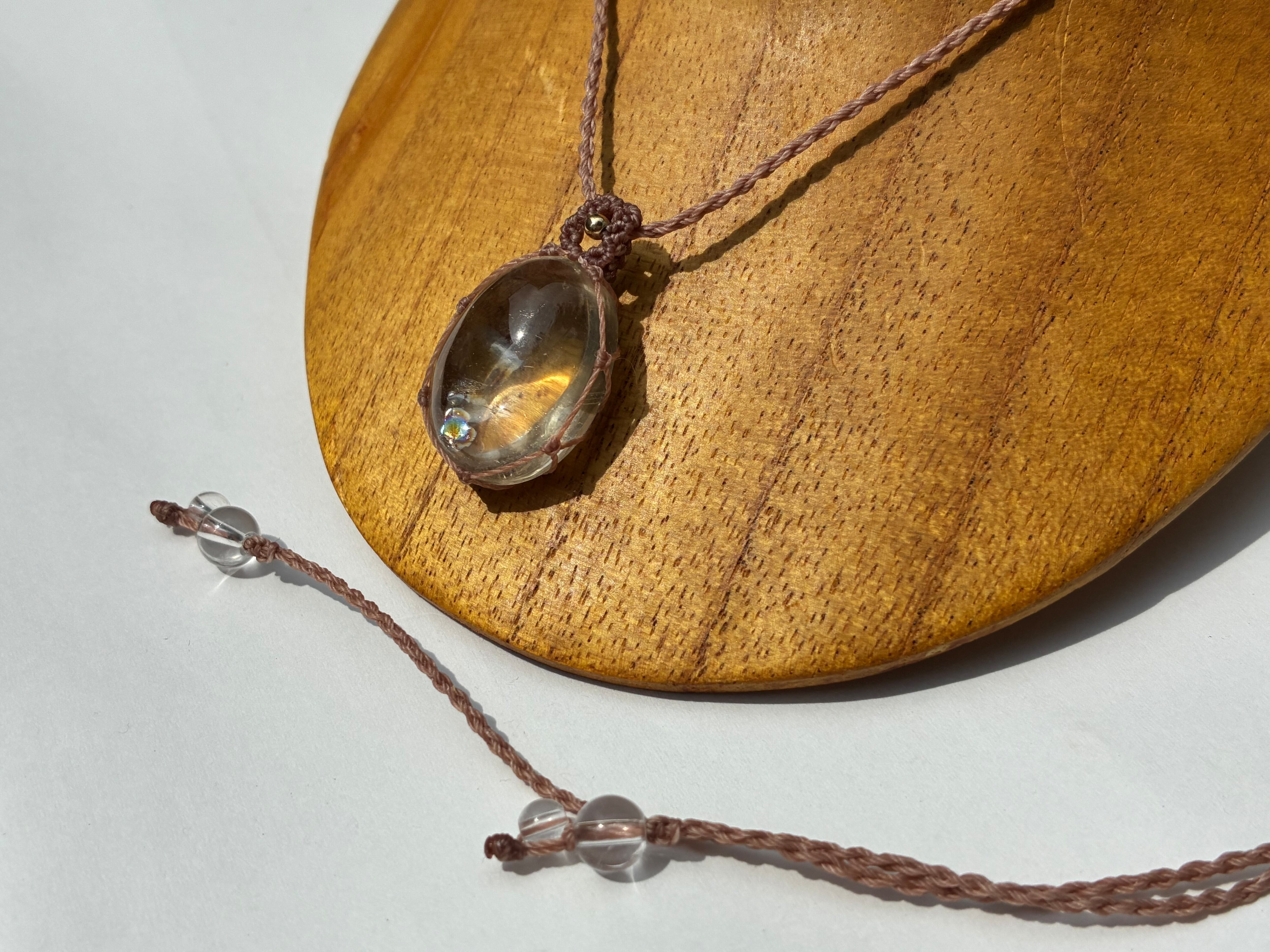 アイリス(虹入り)のライトイエロークォーツのペンダントです。