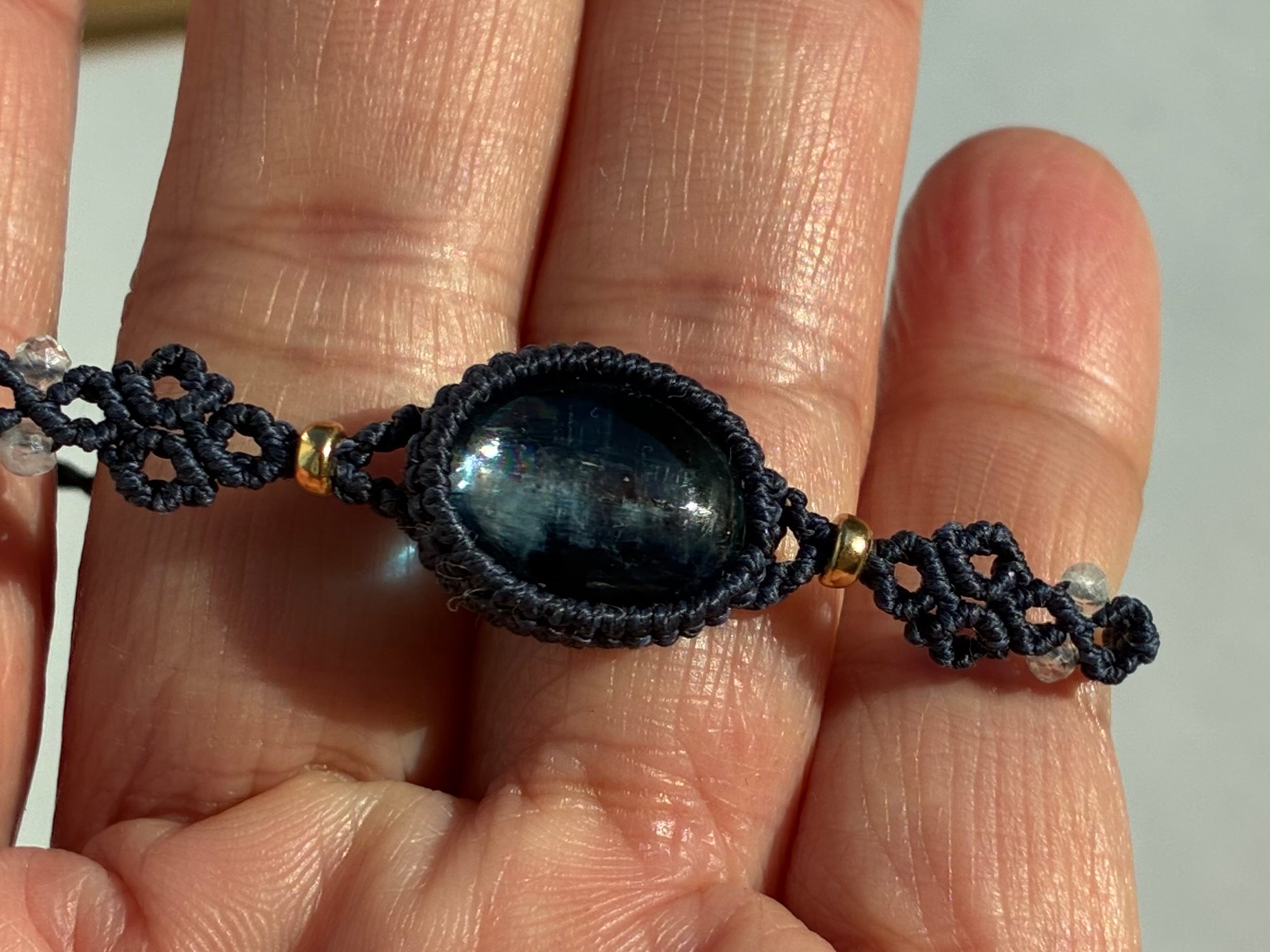 カイヤナイト1.5×1.2㎝。水晶、ホワイトラブラドライト、カイヤナイトビーズ使用。