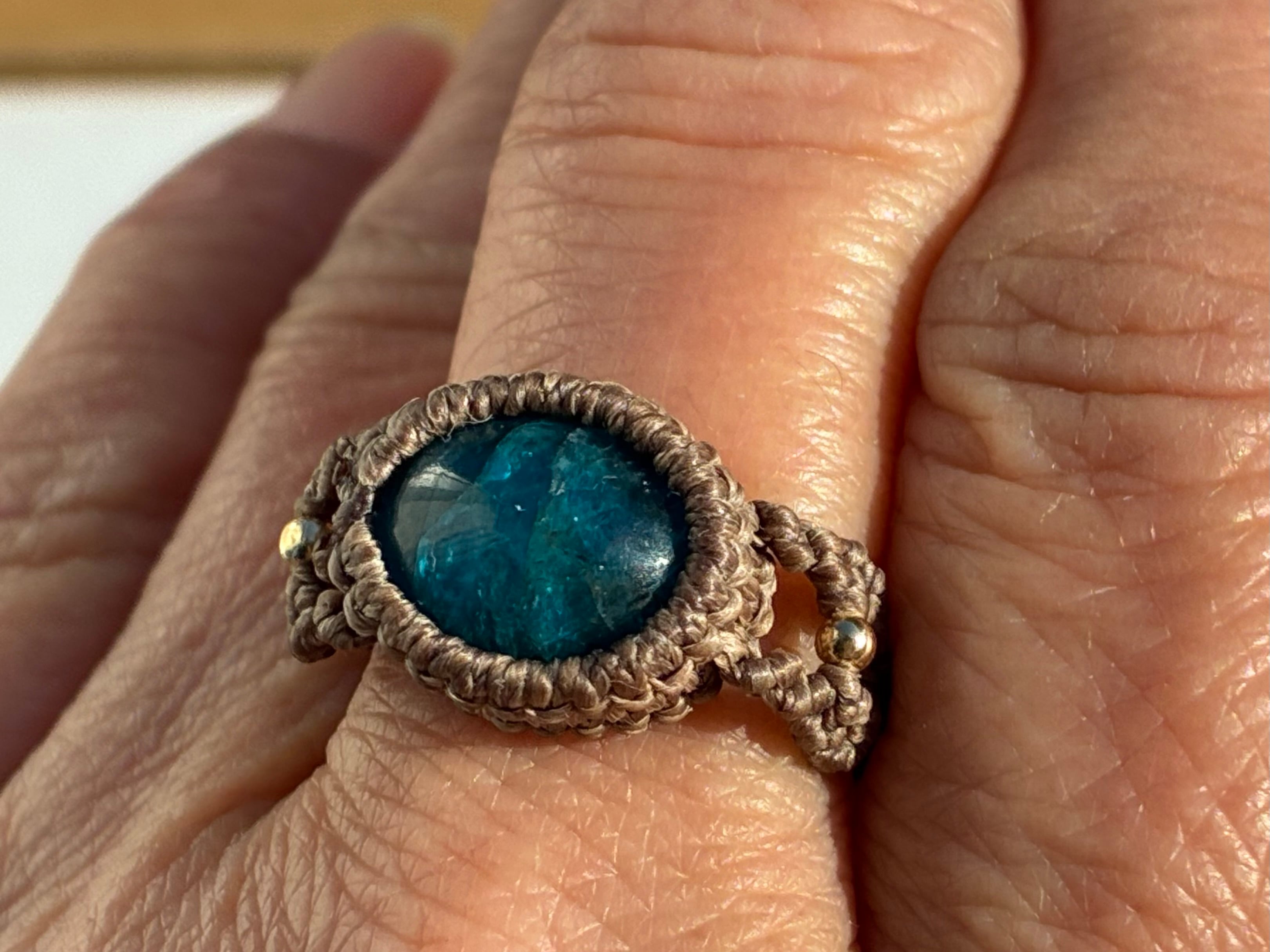 サイズ調整してお送りしますので、ご注文の際ご希望サイズをお知らせください。金属リングよりワンサイズ大きめが良いかと思います。