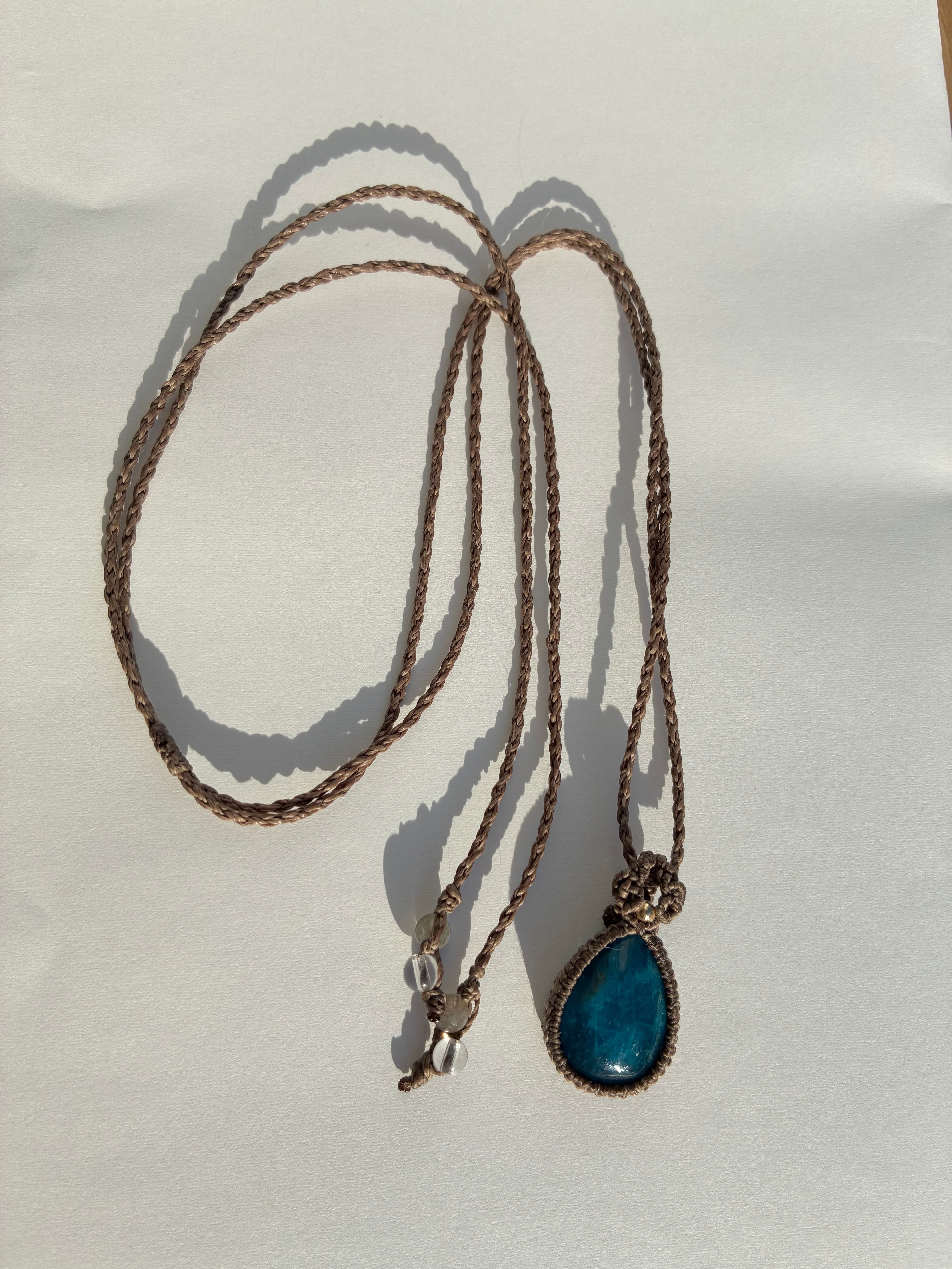 アパタイト2.1×1.7㎝。水晶、ラブラドライトビーズ使用。