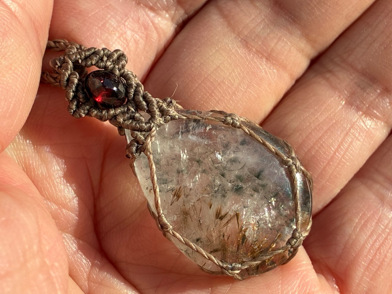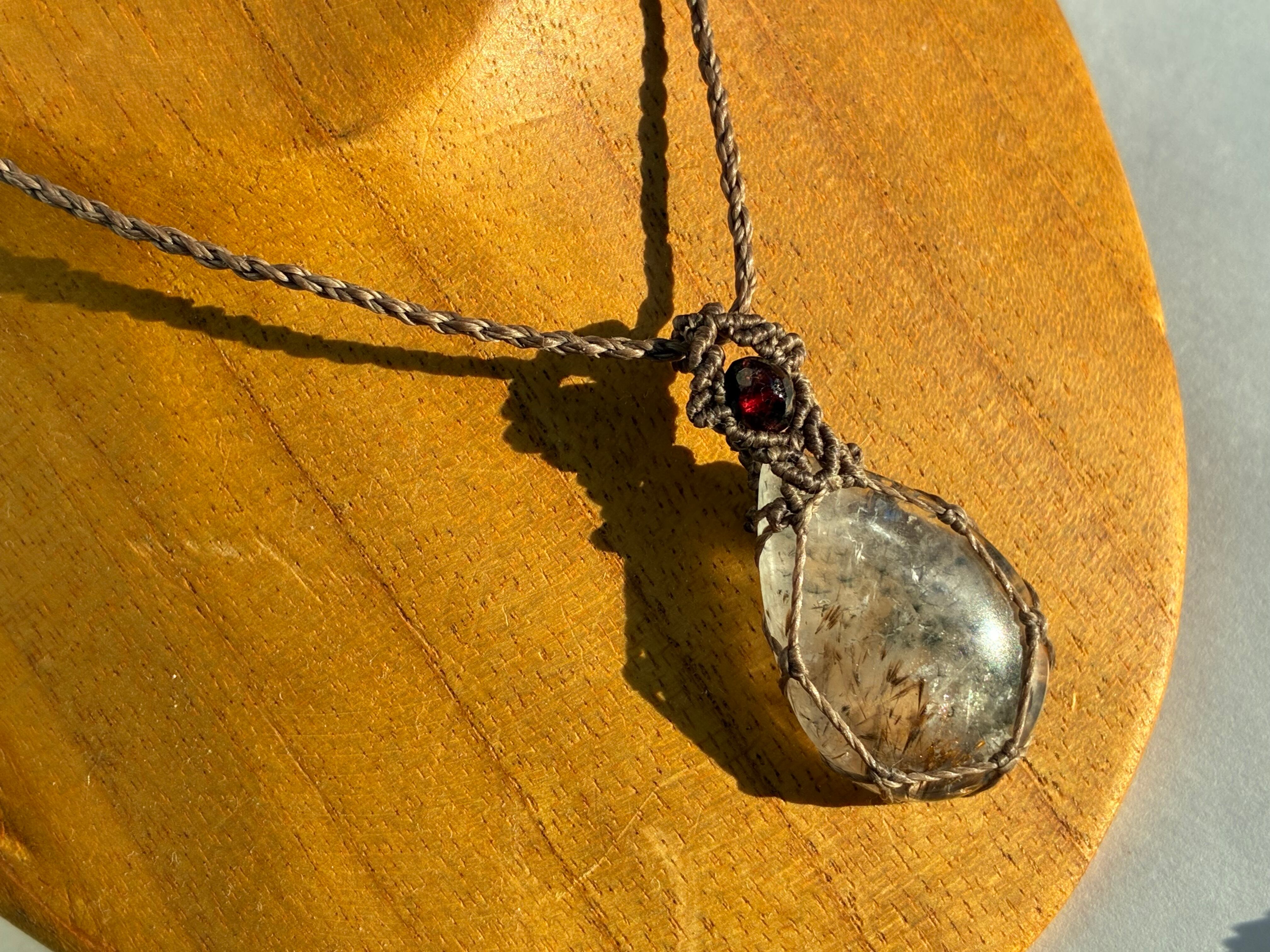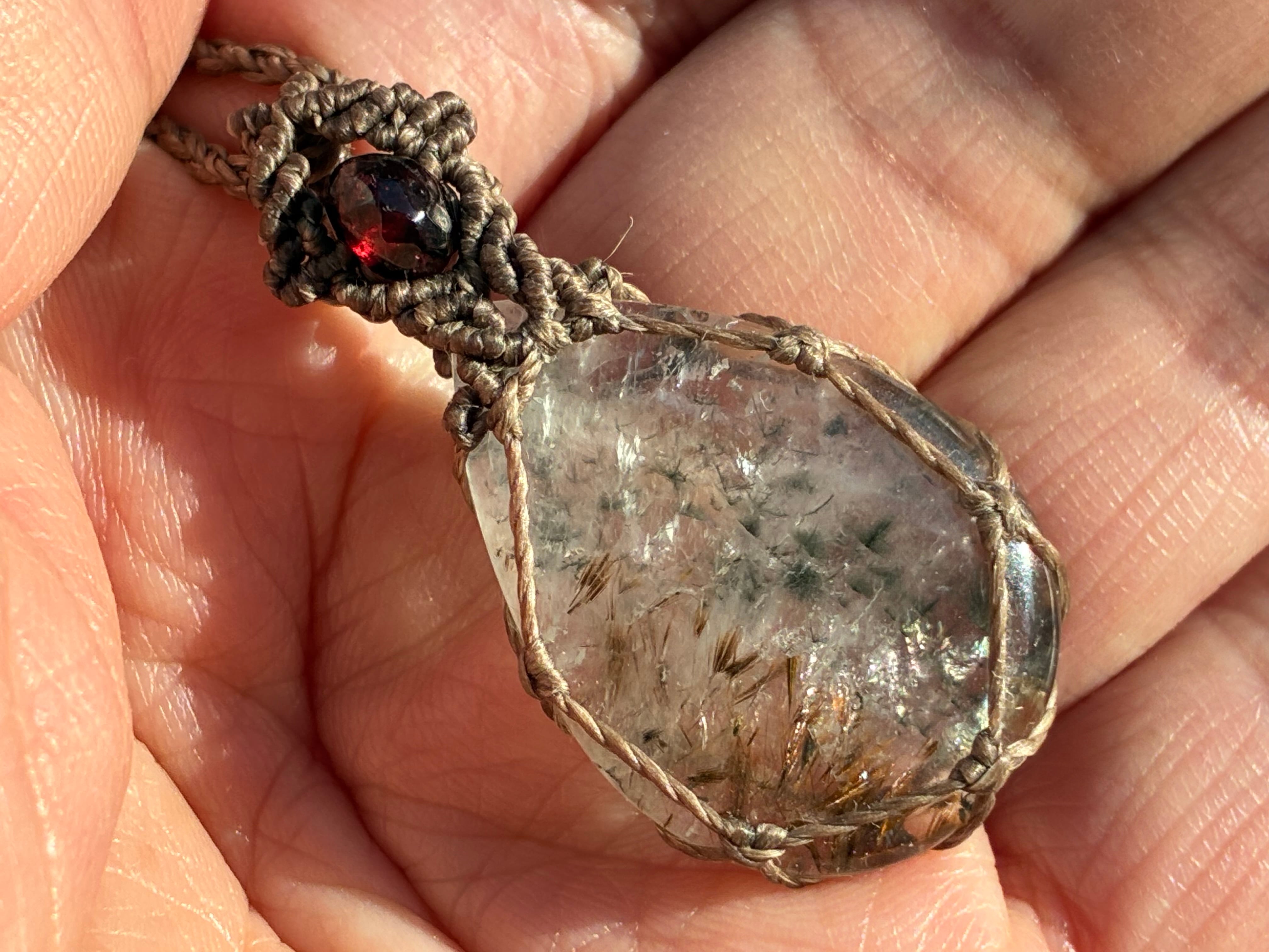 ファイブクォーツ2.8×2.0㎝。ガーネット、水晶ビーズ使用。