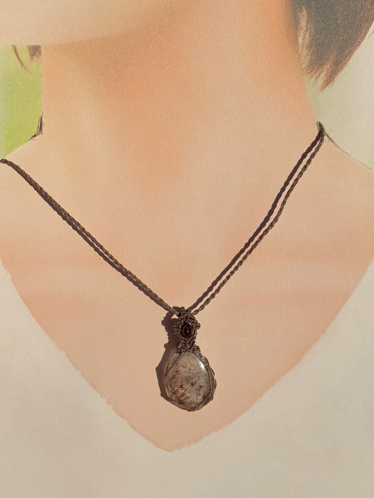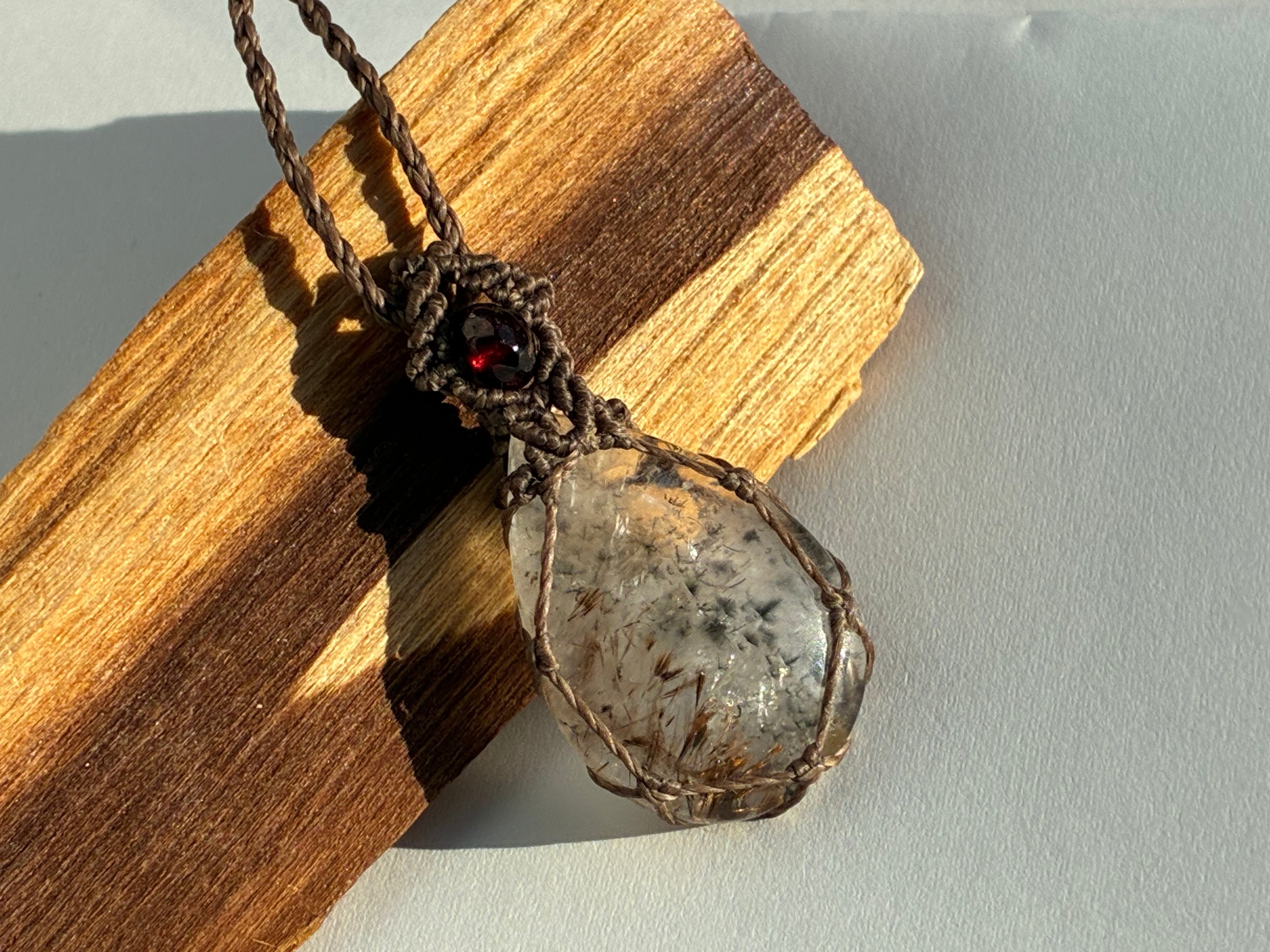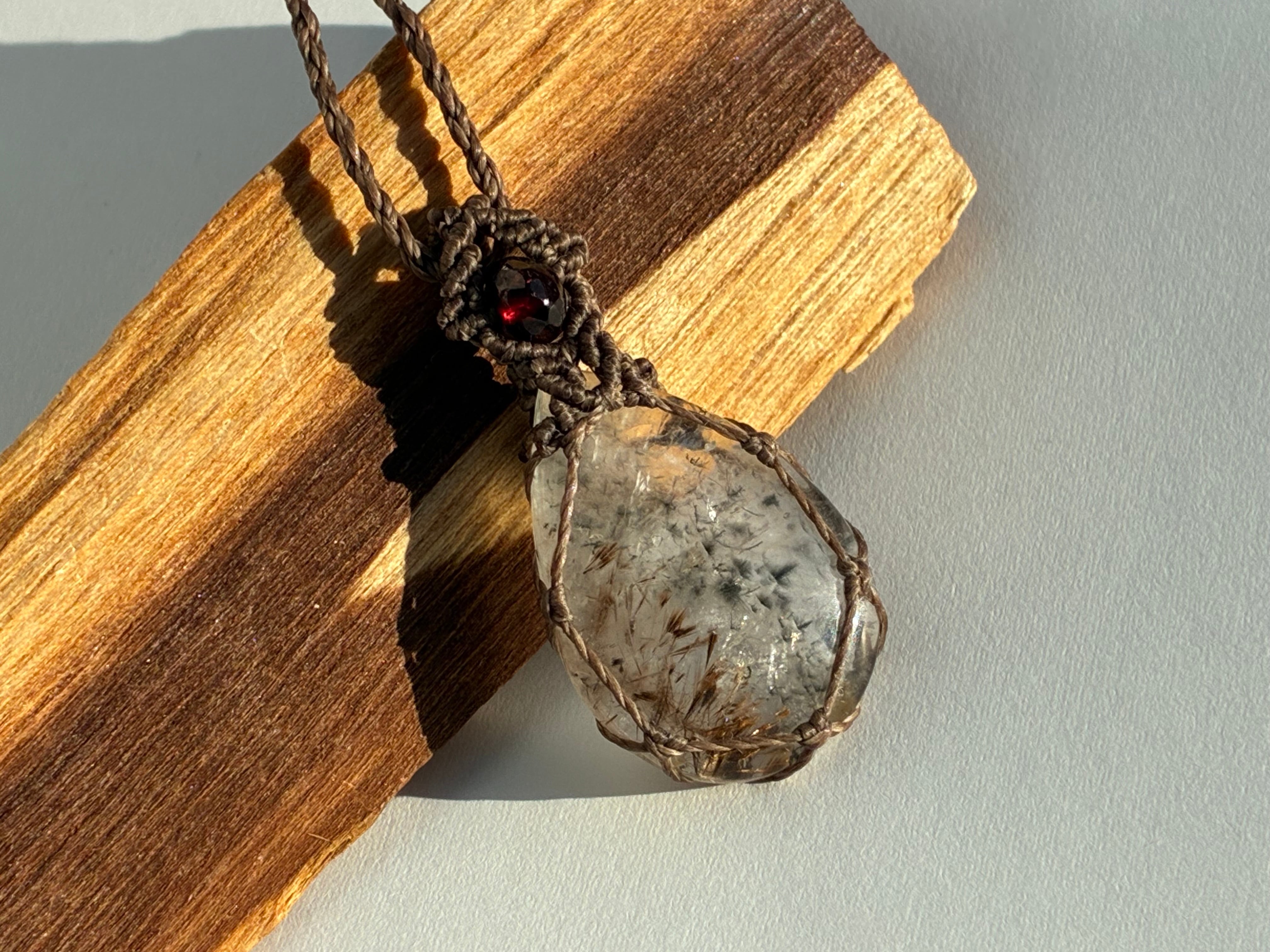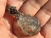 ファイブクォーツ2.8×2.0㎝。ガーネット、水晶ビーズ使用。