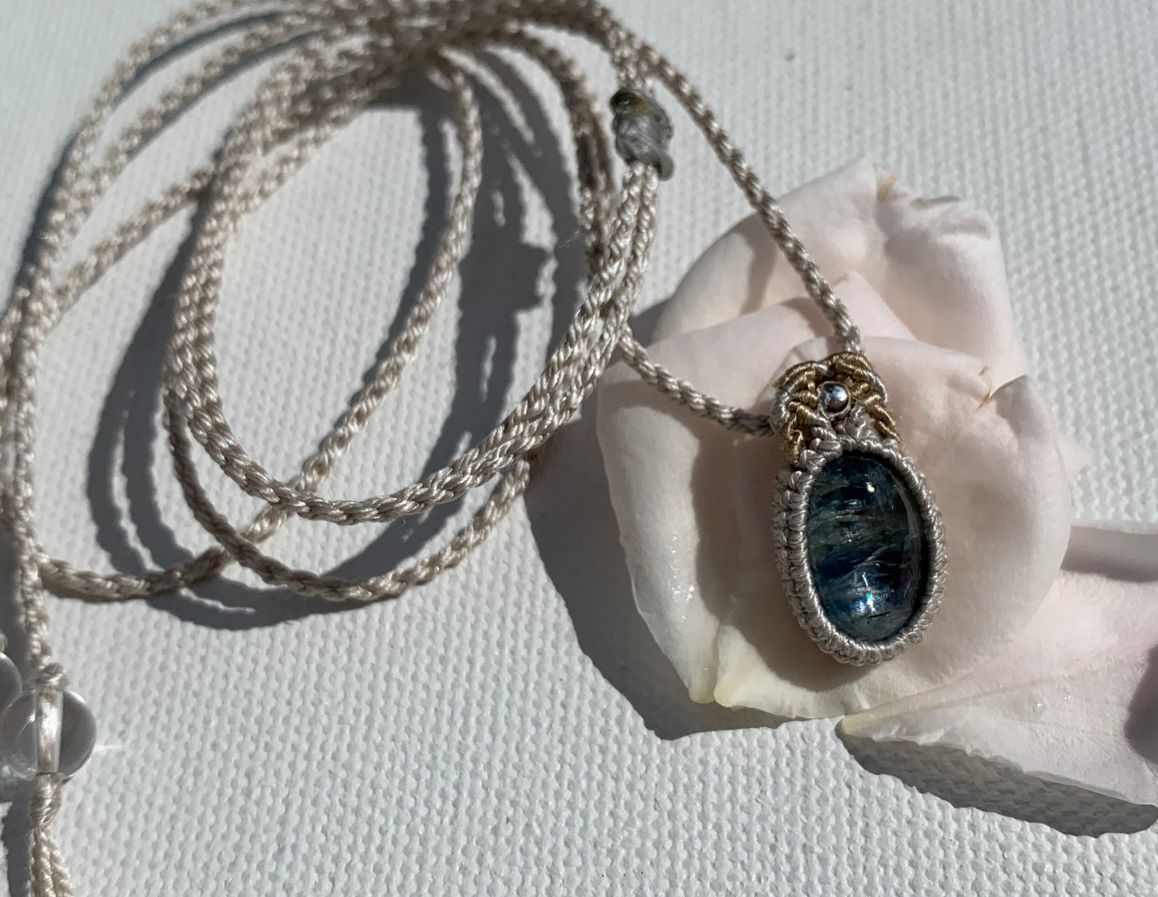 カイヤナイトのシルク糸ペンダント