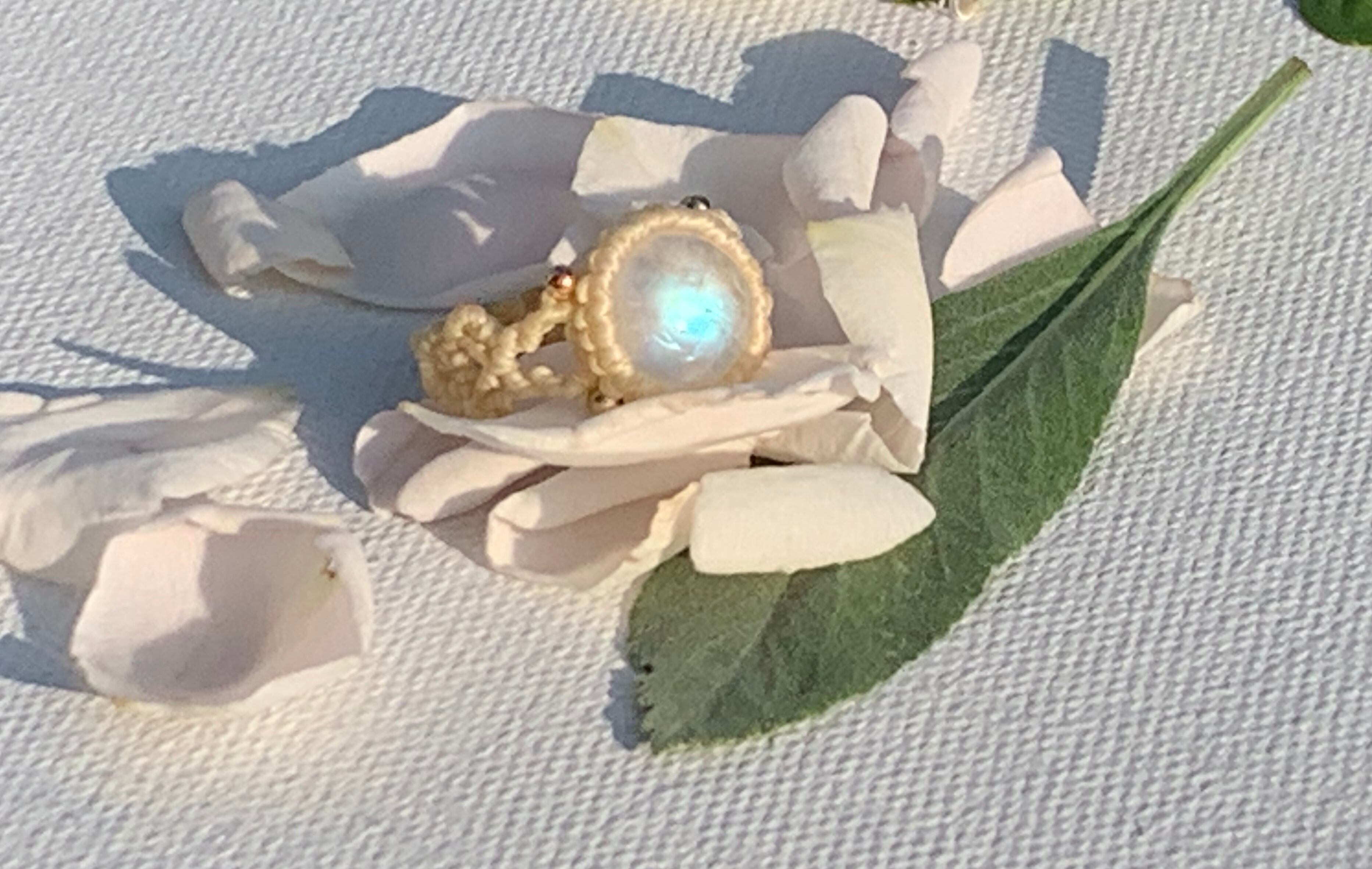 レインボームーンストーンのリング(ホワイト)