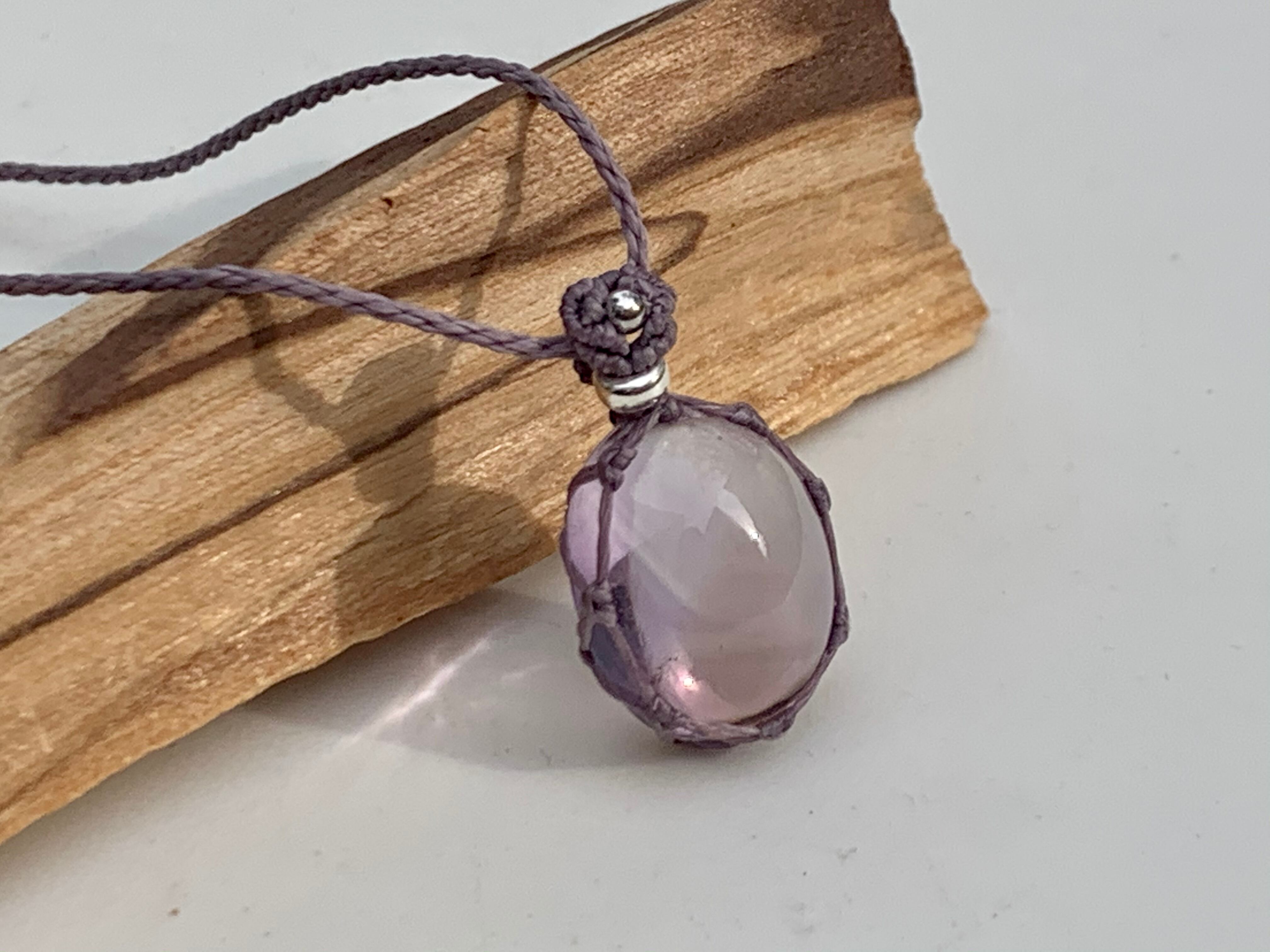 ピンクアメジスト2.0×1.6㎝。水晶。SV925パーツ使用。首紐の長さは80㎝ですが、アジャスターでお好きな長さに調節していただけます。