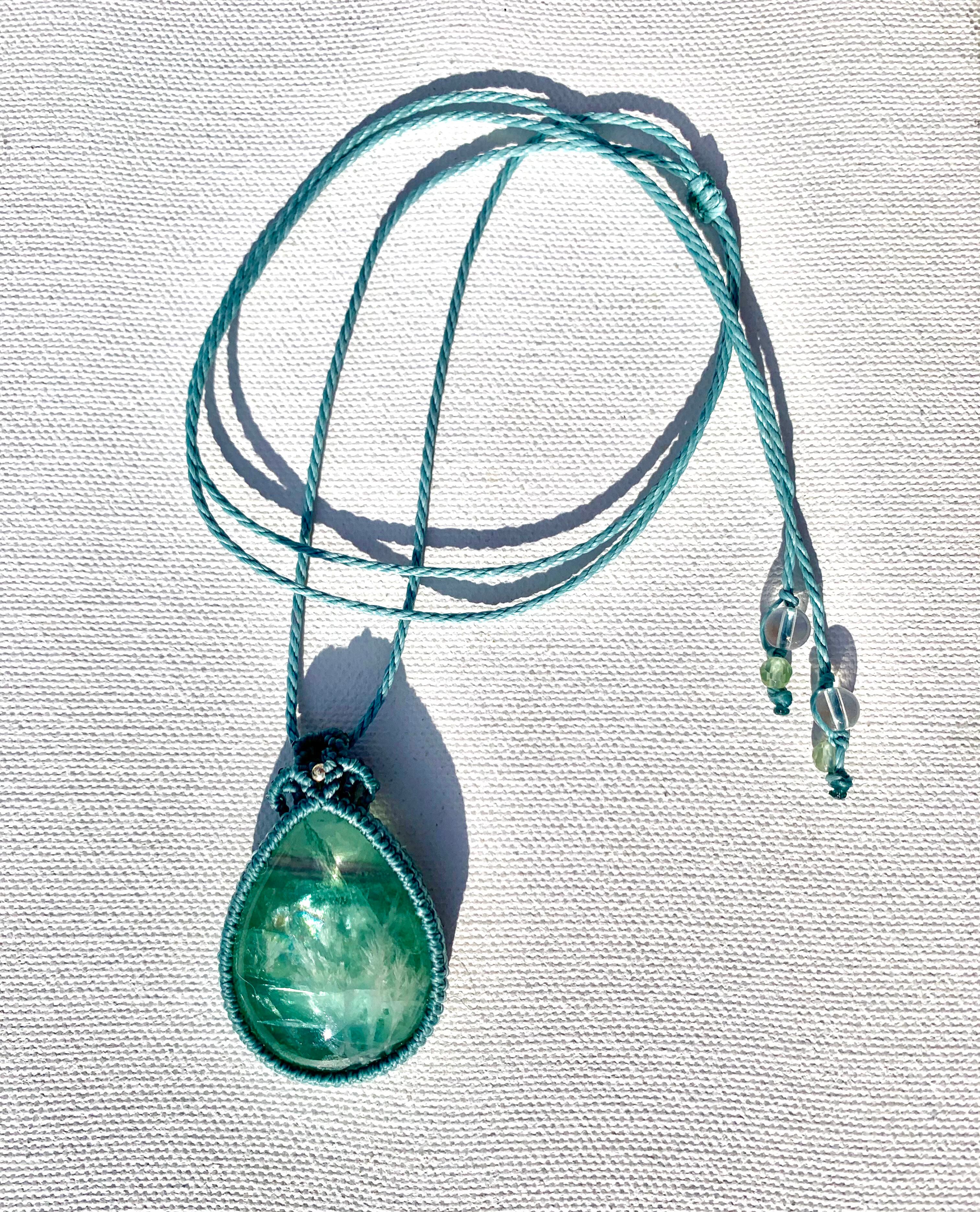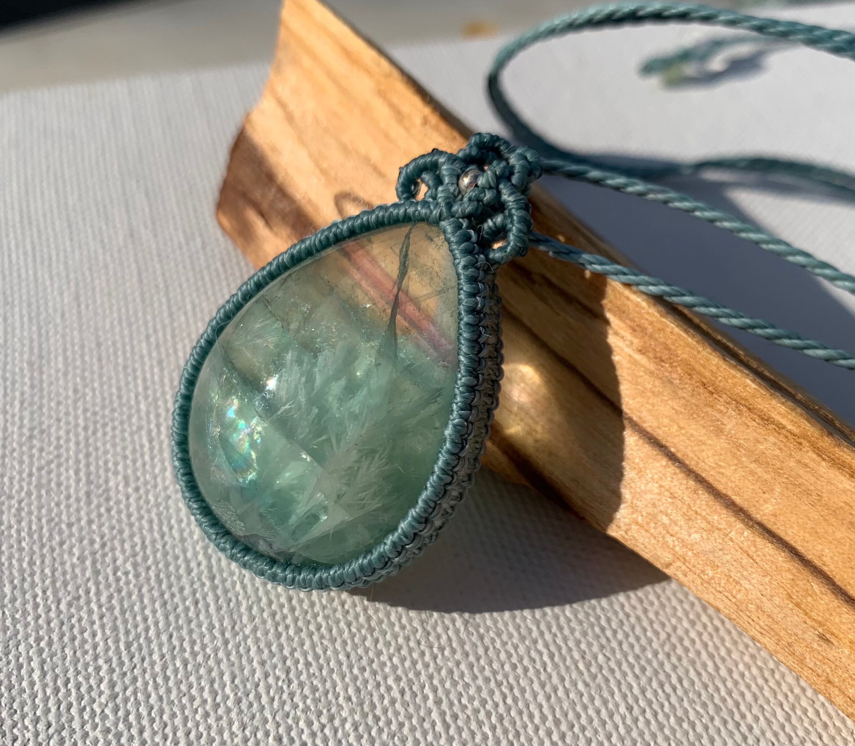大きめの存在感あるエンジェルフェザーフローライトのペンダントです。角度によっては虹も見られます。