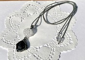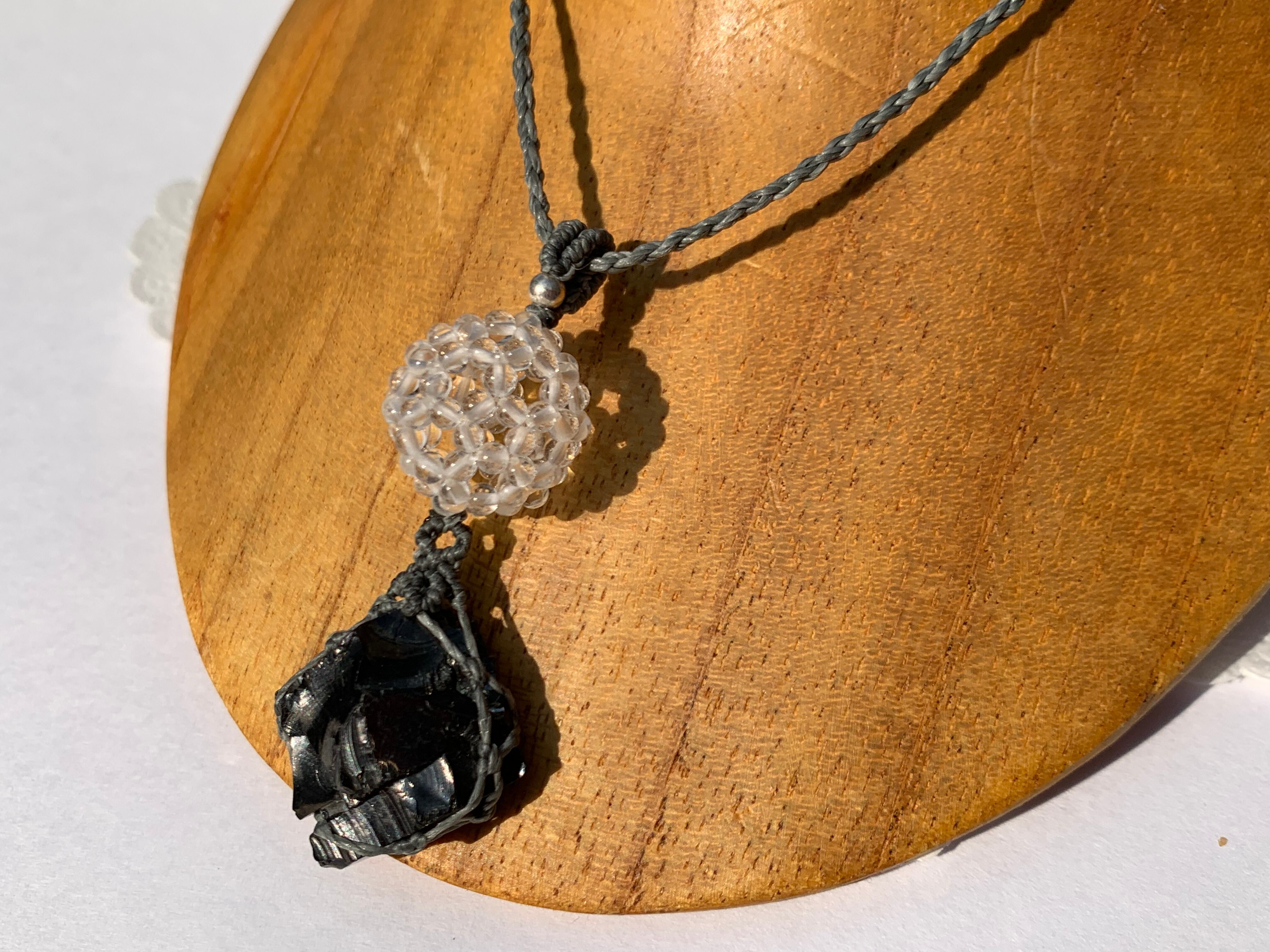 高品質シルバーシュンガイトと水晶バッキーボールの連結ペンダントです。