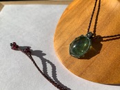 珍しいグリーンアパタイトのルースをシンプルに編み上げました。