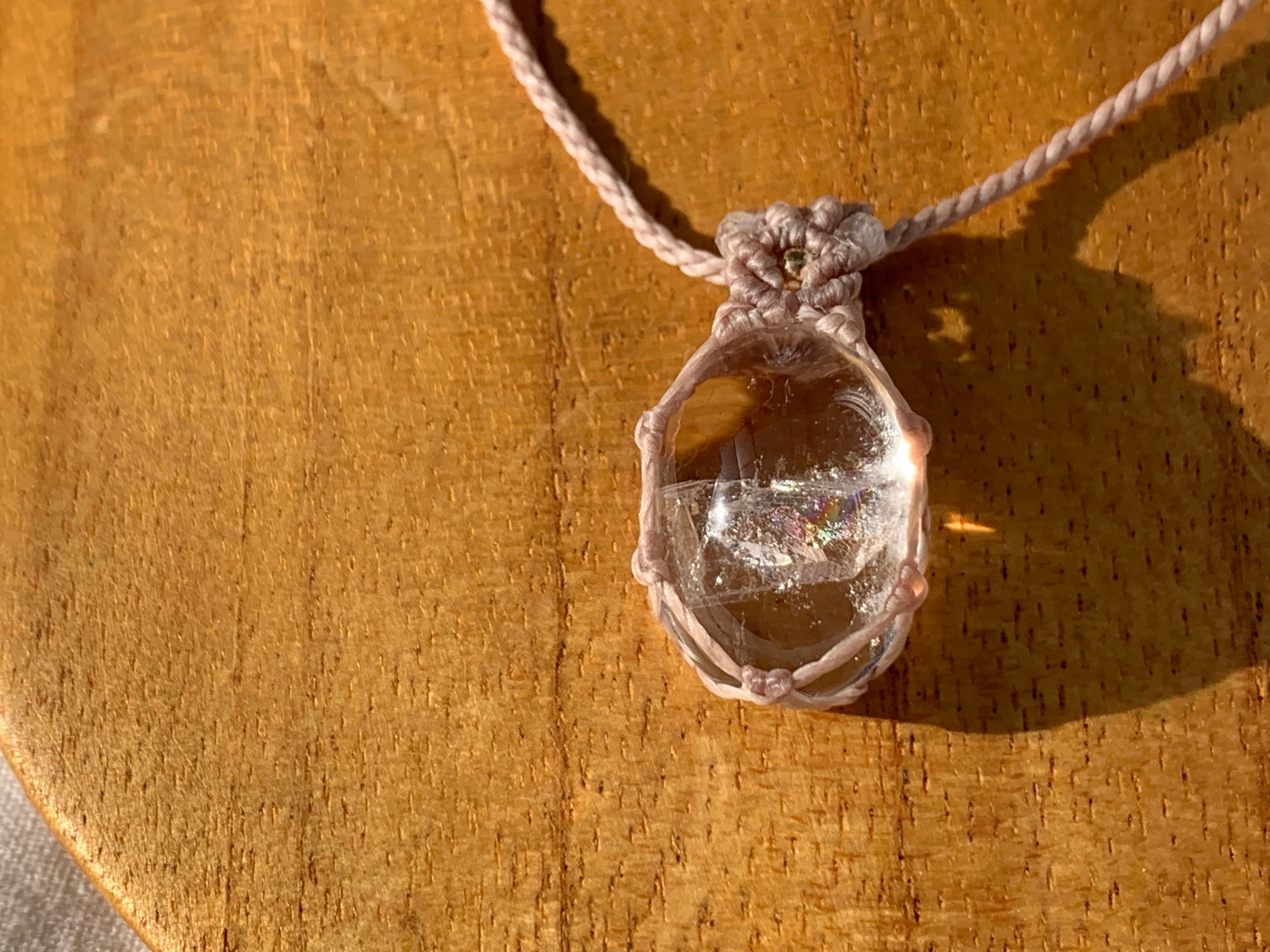 透明度抜群のクォーツの中に右から横向きにクォーツが貫通していて、角度によっては虹色の輝きが見れます。