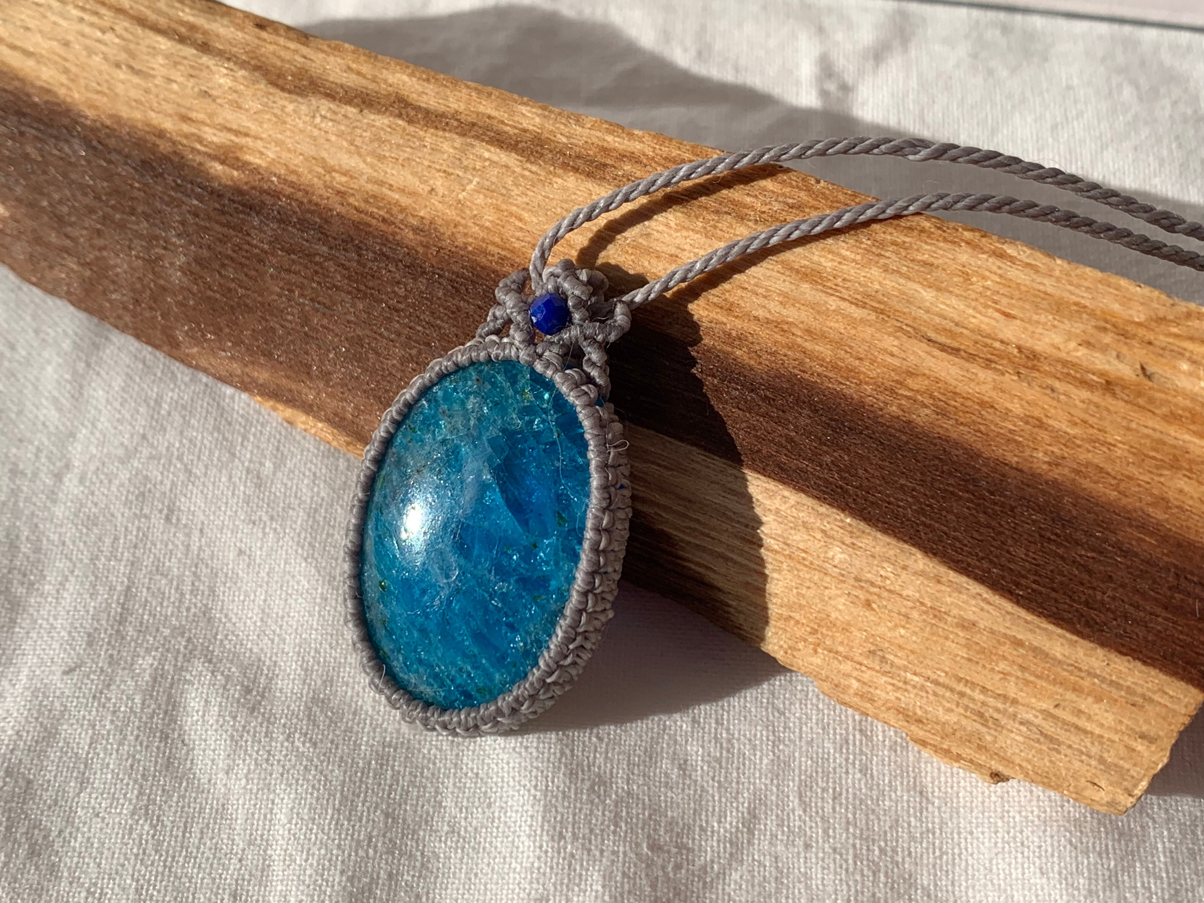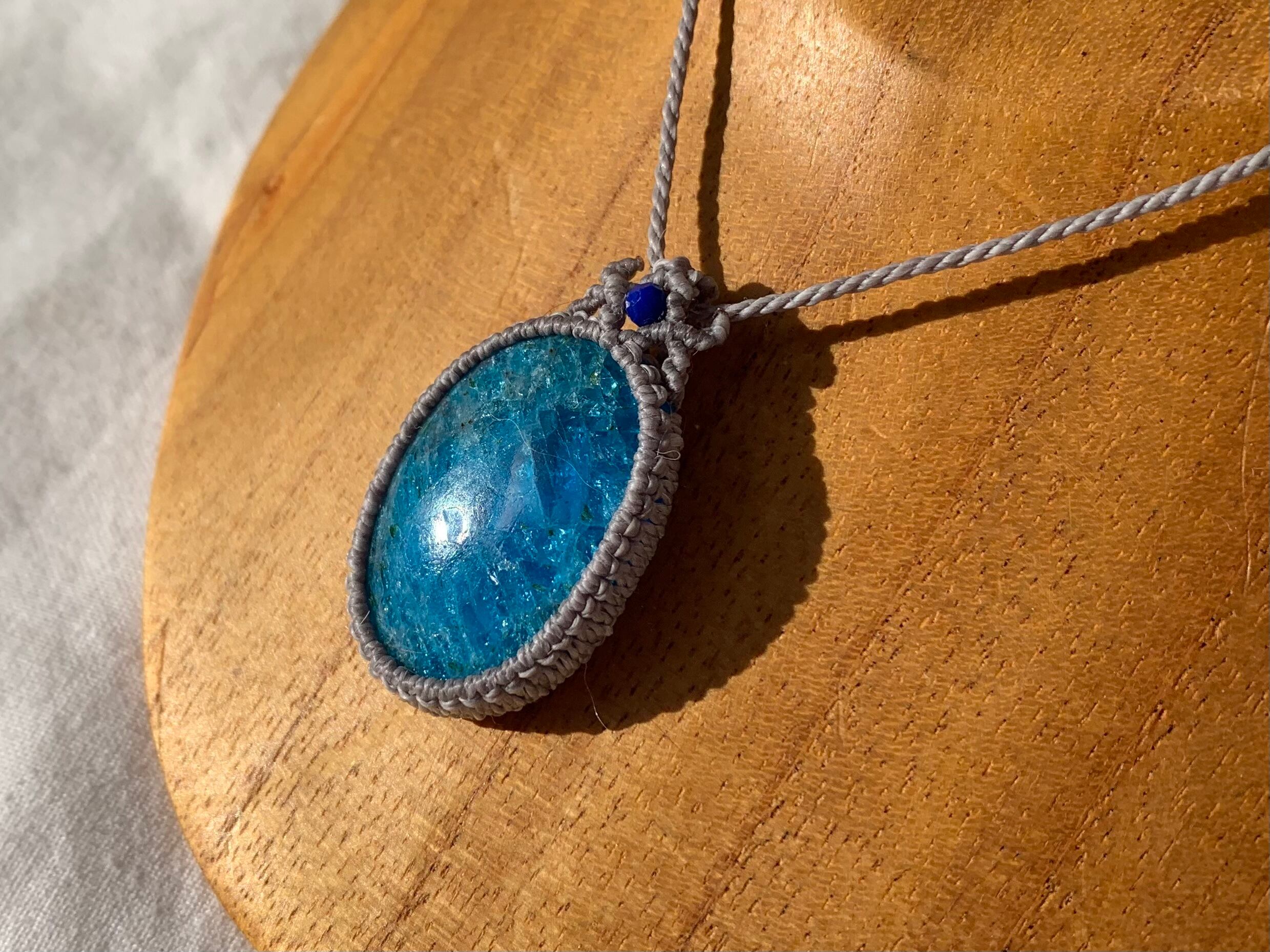 少し大ぶりの存在感あるブルーアパタイトのペンダントです。
